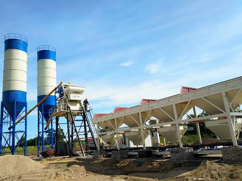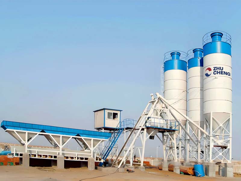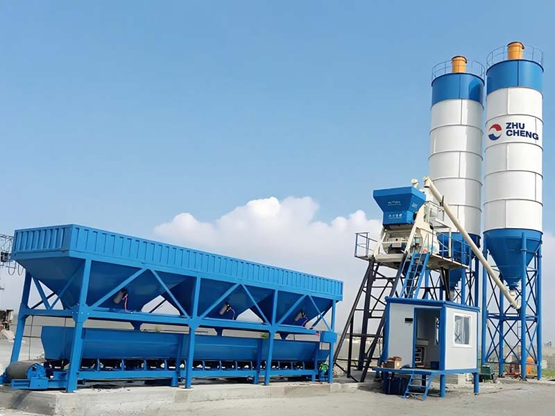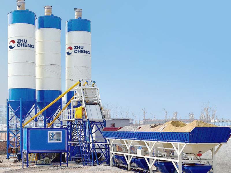 HZS75 bucket concrete mixing plant adopts a JS1500 double horizontal shaft concrete mixer, batching machine adopts a PLD2400 batching machine, the theoretical output is 75 cubic meters per hour.