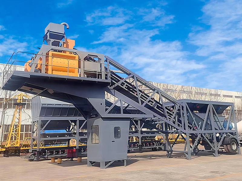 YHZS35 belt conveyor mobile concrete mixing plant adopts a JS750 double horizontal shaft concrete mixer, batching machine adopts a PLD1200 batching machine, the theoretical output is 35 cubic meters per hour.