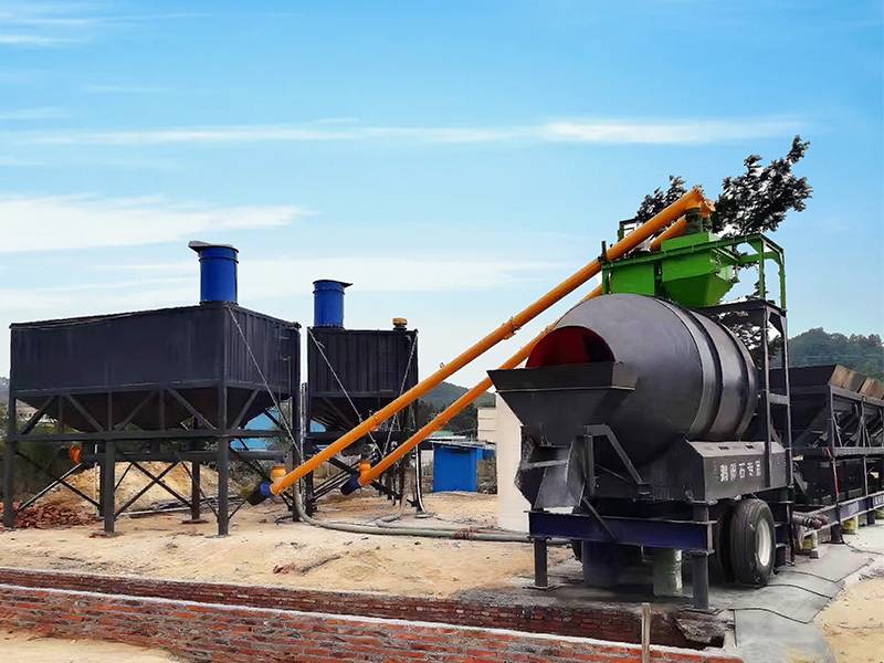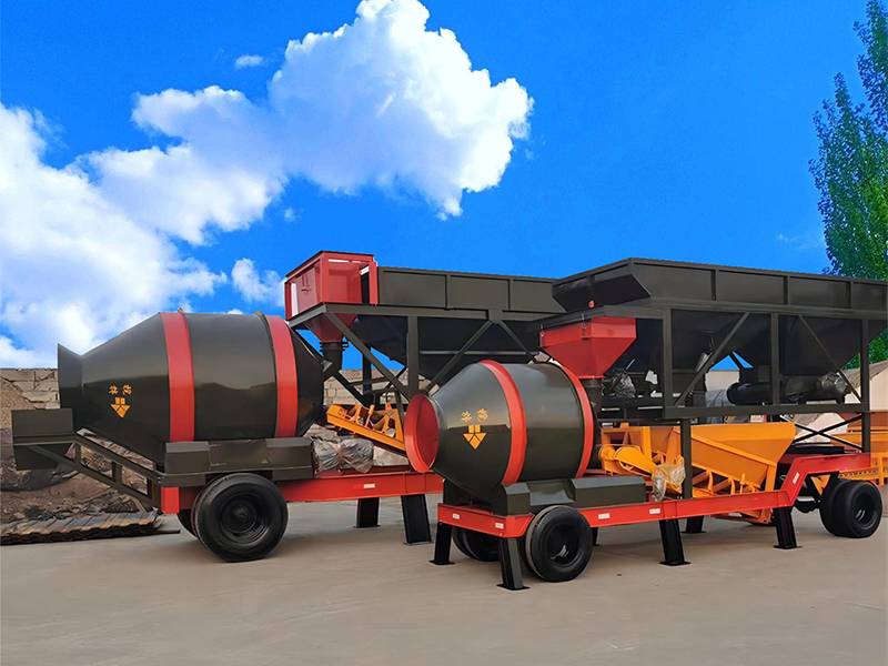 YHZM50 mobile drum concrete mixing plant adopts a JZM1000 drum concrete mixer, batching machine adopts a PLD1600 batching machine, the theoretical output is 50 cubic meters per hour.