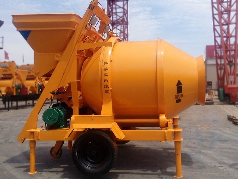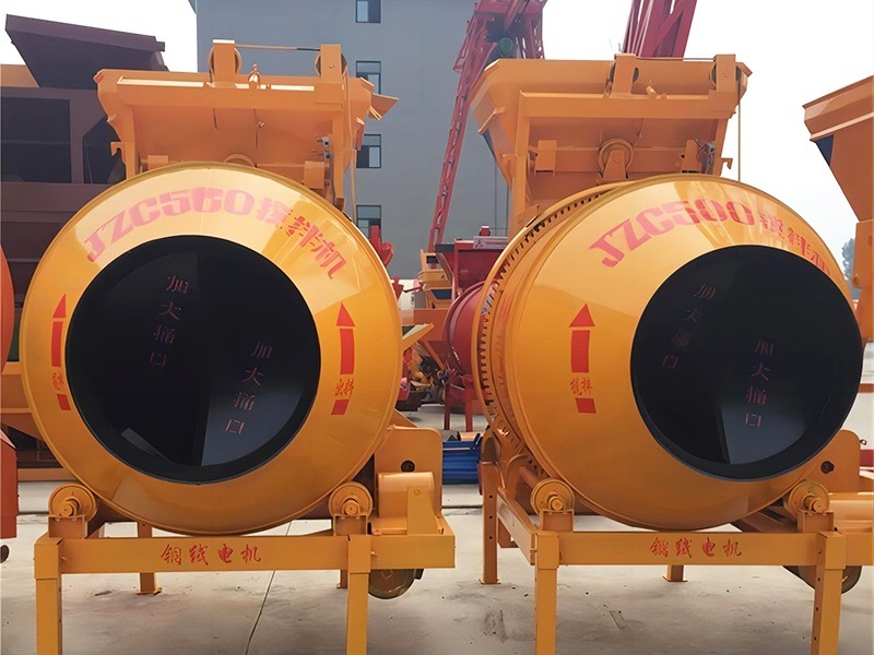 JZC500 electric concrete mixer is a self-falling concrete mixer with double-cone mixing drum for forward mixing and reverse discharging. Each drum can mix 500L of concrete (referring to the volume of compacted concrete), and can produce 18-20 cubic meters per hour.