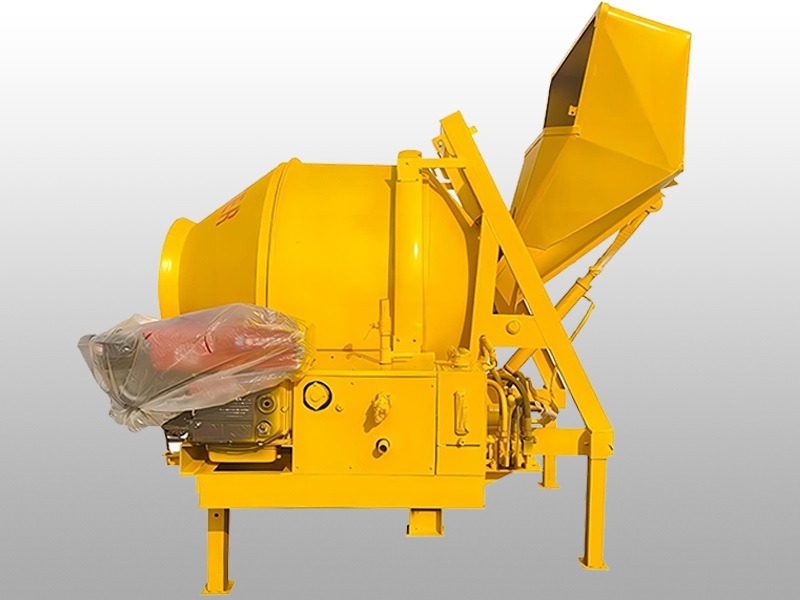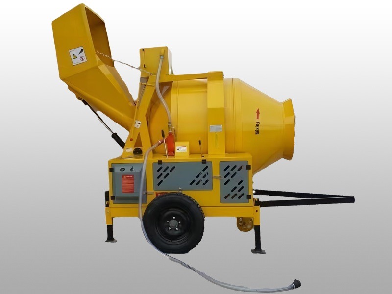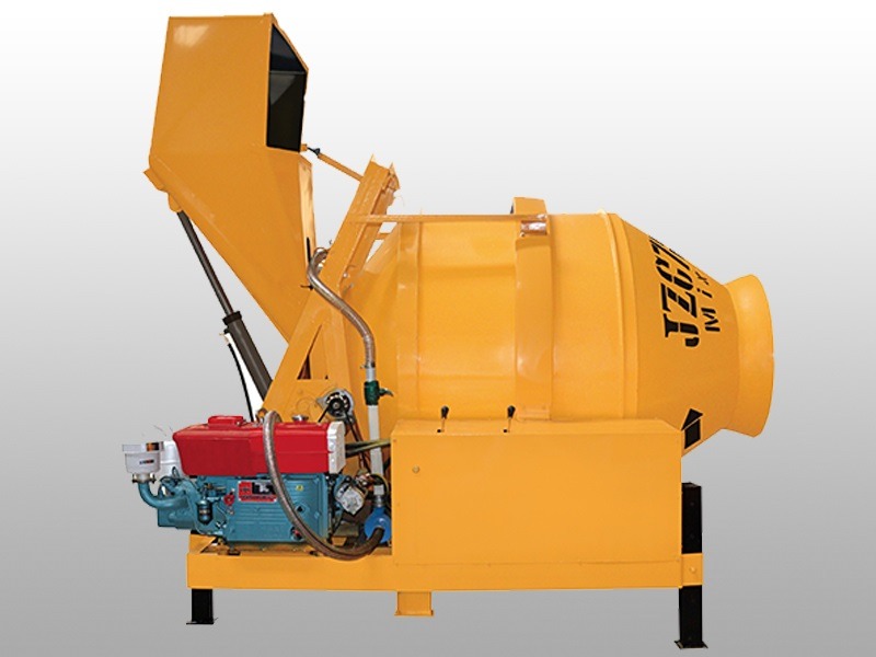 JZC500 diesel concrete mixer is a self-falling concrete mixer with double-cone mixing drum for forward mixing and reverse discharging. Each drum can mix 500L of concrete (referring to the volume of compacted concrete), and can produce 18-20 cubic meters per hour.