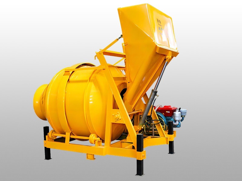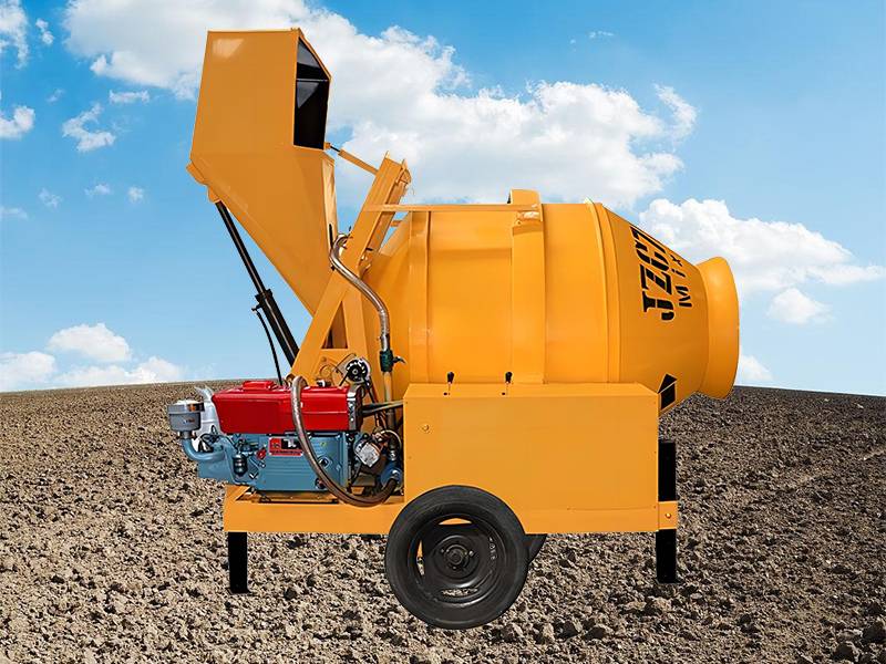 JZC350 diesel concrete mixer is a self-falling concrete mixer with double-cone mixing drum for forward mixing and reverse discharging. Each drum can mix 350L of concrete (referring to the volume of compacted concrete), and can produce 10-14 cubic meters per hour.