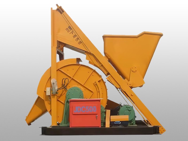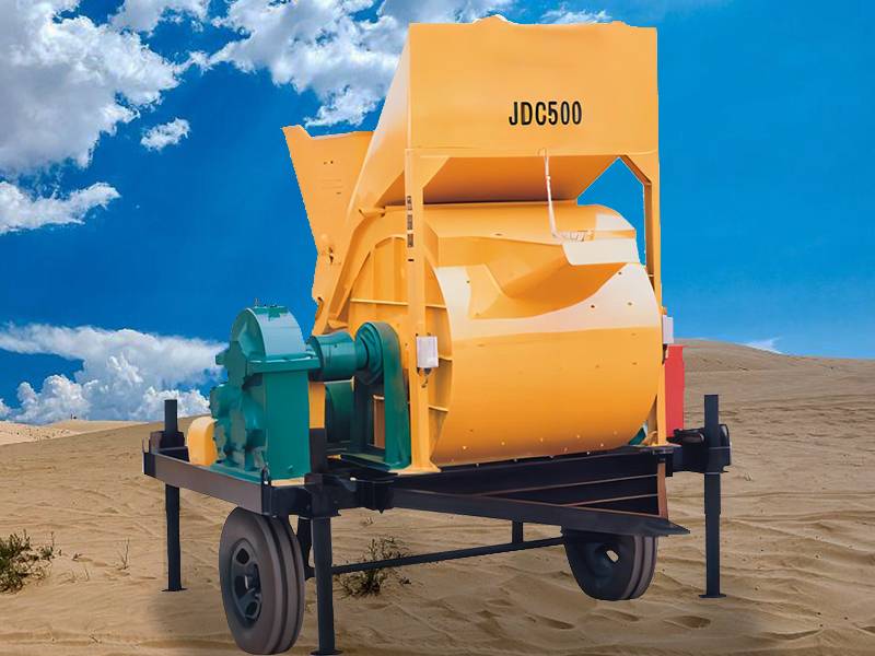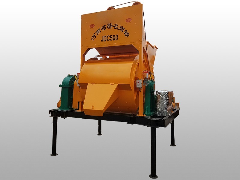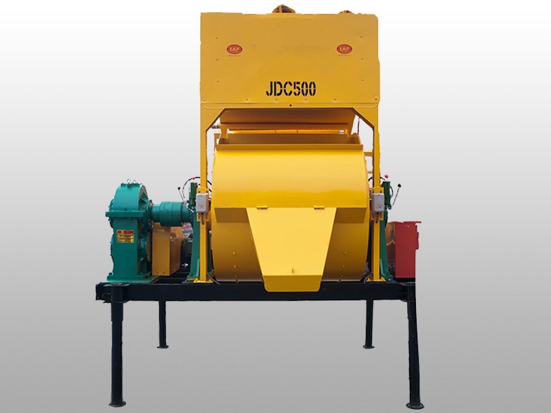 JDC500 concrete mixer is a forced single shaft mixer. The rotating shovel blade of the mixer stirs the materials axially and tangentially. Each drum can mix 500L of concrete (referring to the volume of compacted concrete), and can produce 25-30 cubic meters per hour.