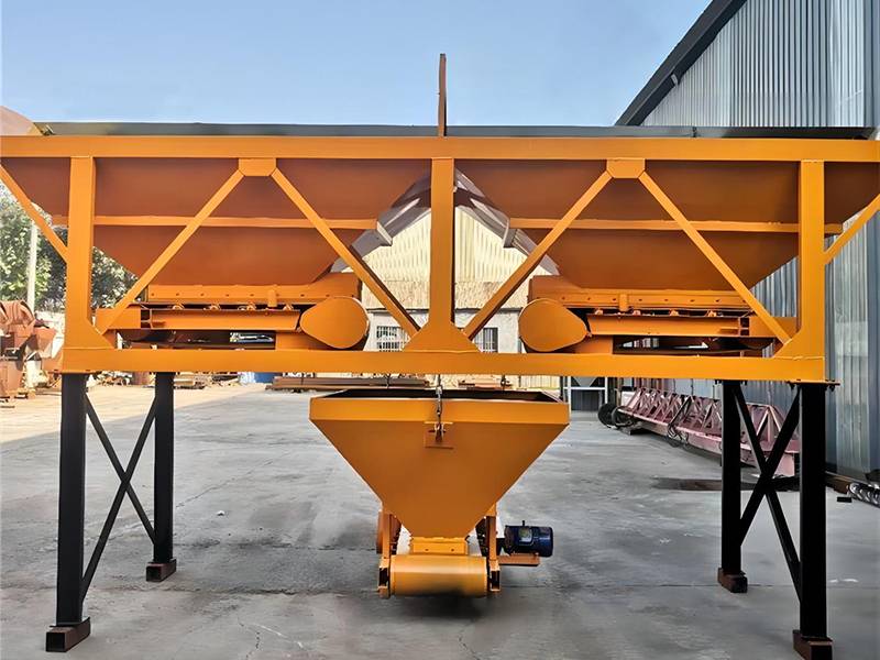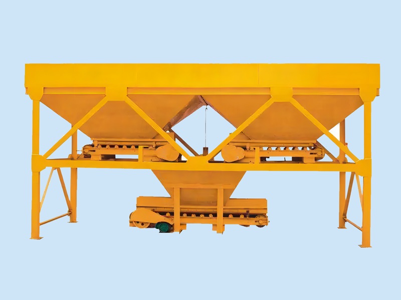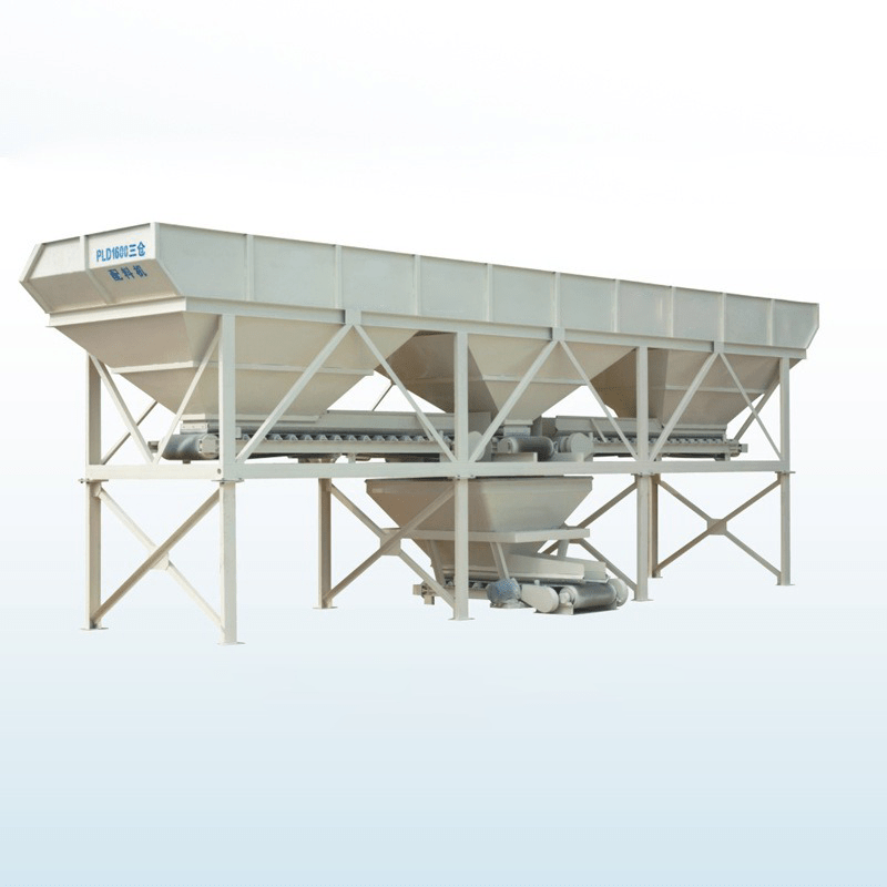 Hopper type batching machine is composed of storage hopper, weighing hopper, level conveying belt, etc.Aggregates are discharged from storage hopper into weighing hopper by belt and are discharged again to level conveying belt via discharge door controlled by belt after weighing.