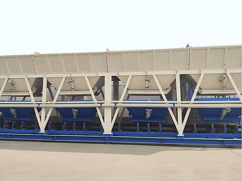 1.The number of hoppers in batching machine is determined to the types of stones and sand. Storage silos are generally divided into 2, 3, 4 silos and can store 3-6 kinds of materials.