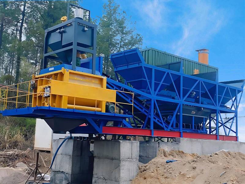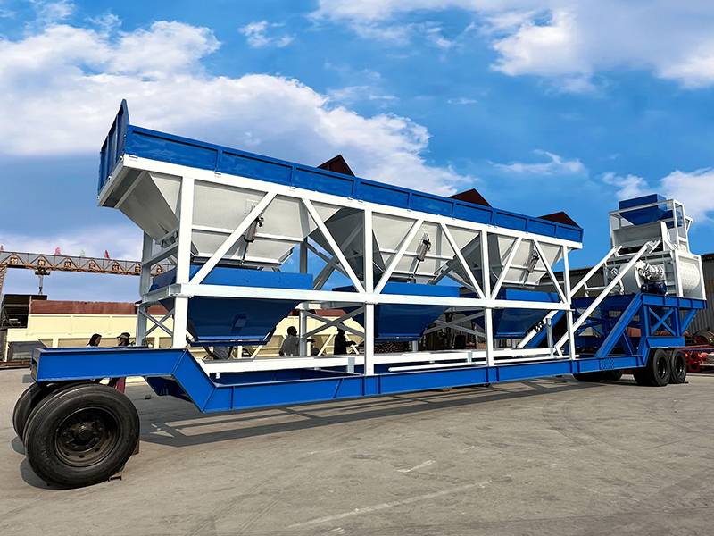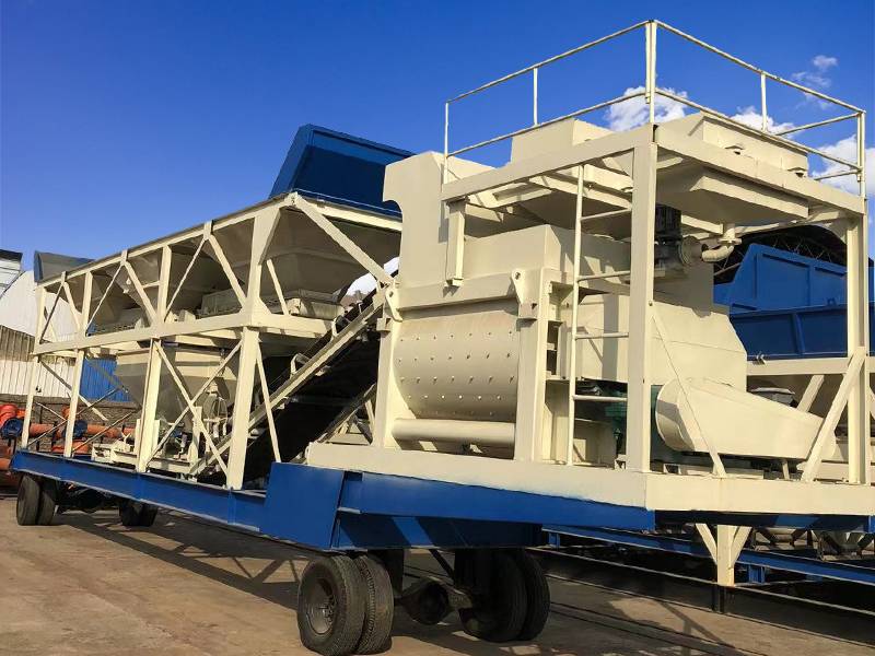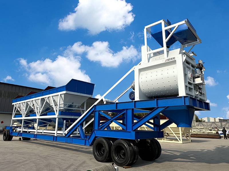 YHZS90 forced mixer belt conveyor mobile concrete batching plant adopts a JS1500 double horizontal shaft concrete mixer, batching machine adopts a PLD2400 batching machine, the theoretical output is 90 cubic meters per hour.