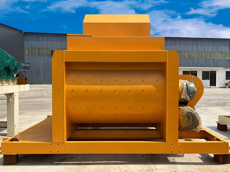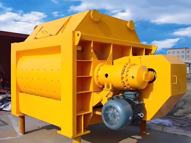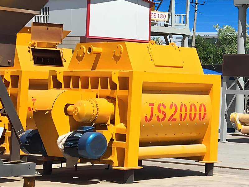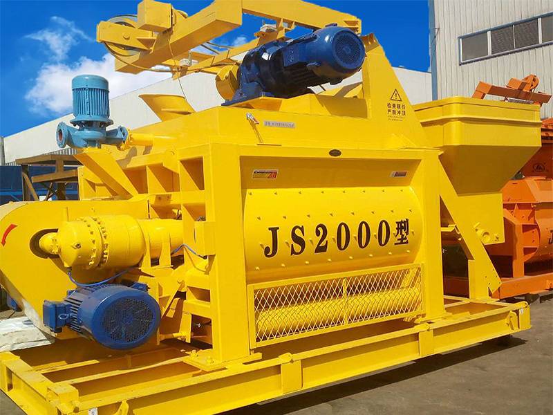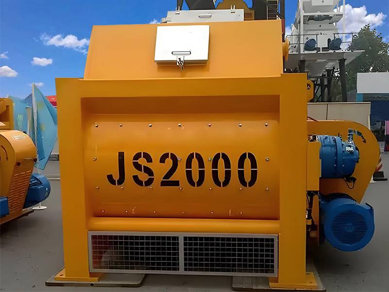 JS2000 concrete mixer is a double-horizontal-shaft forced mixer. Each drum can mix 2000L of concrete (referring to the volume of compacted concrete), and can produce 80-100 cubic meters per hour.