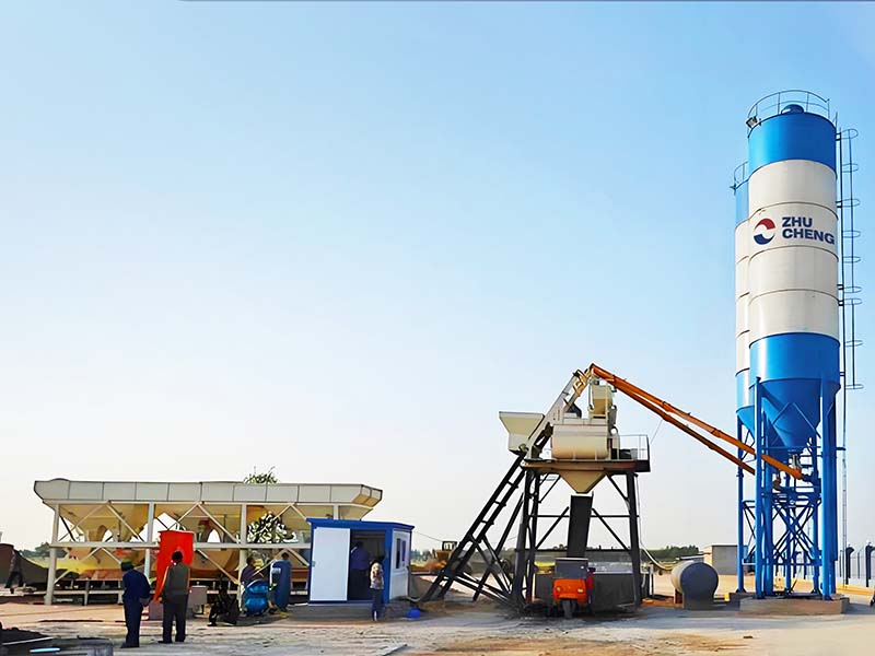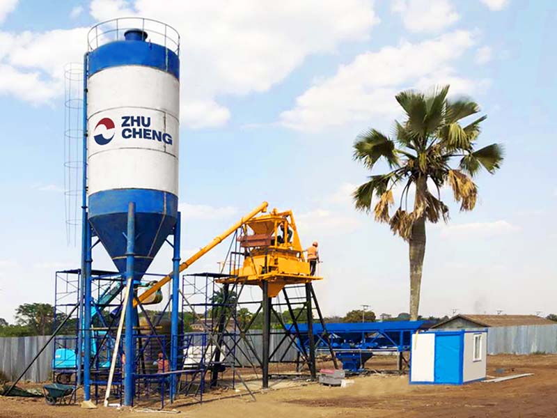 HZS25 bucket concrete mixing plant adopts a JS500 double horizontal shaft concrete mixer, batching machine adopts a PLD800 batching machine, the theoretical output is 25 cubic meters per hour.