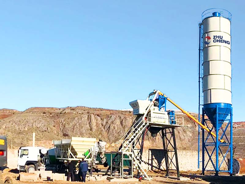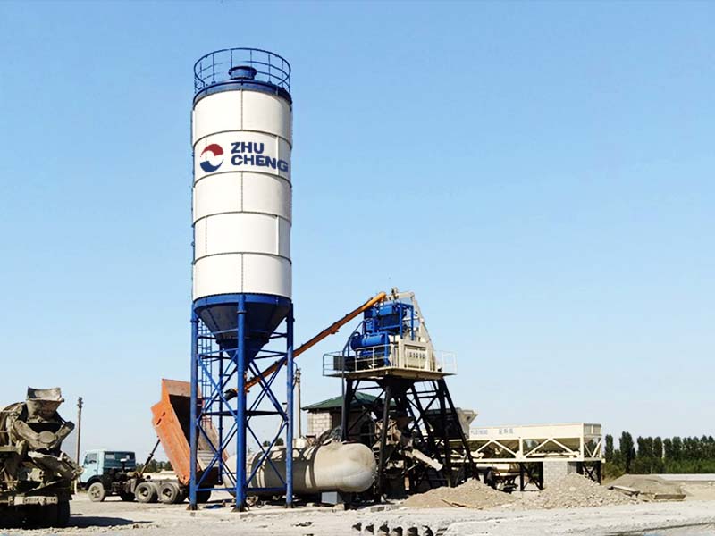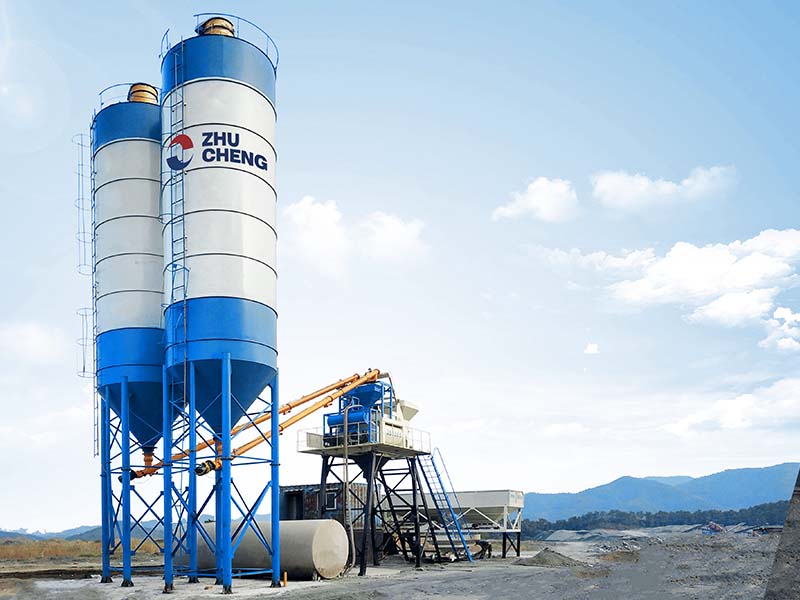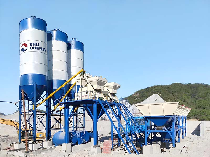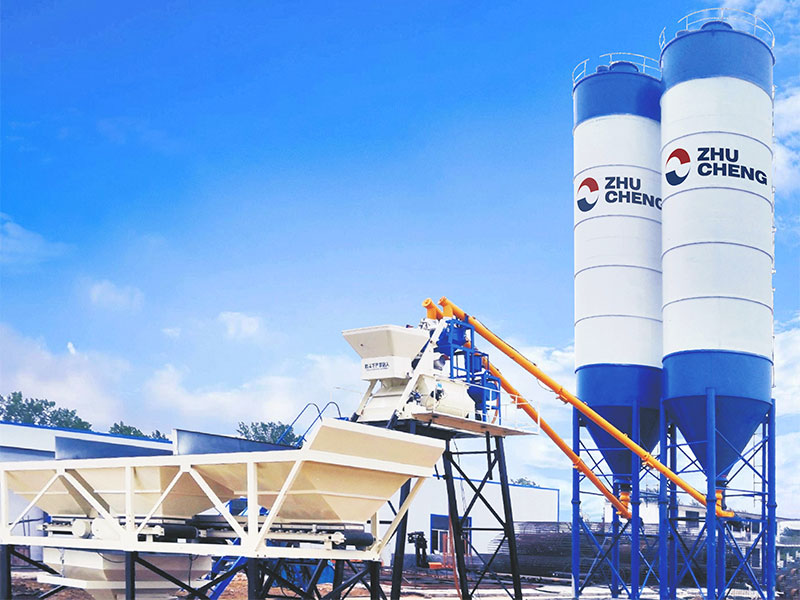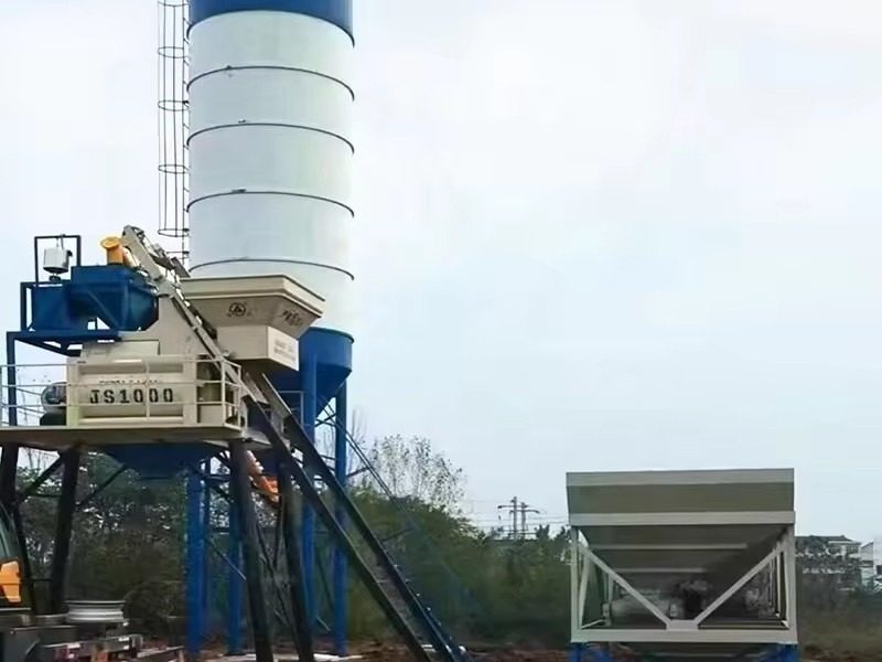 HZS50 bucket concrete mixing plant adopts a JS1000 double horizontal shaft concrete mixer, batching machine adopts a PLD1600 batching machine, the theoretical output is 50 cubic meters per hour.